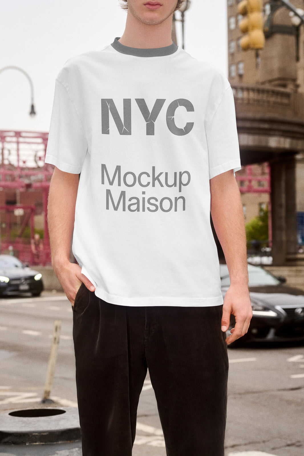This T-Shirt Mockup is available as a layered PSD file and is easy to customize. You can insert your design through the embedded Smart Object and adjust the sleeve color, and neckline color.